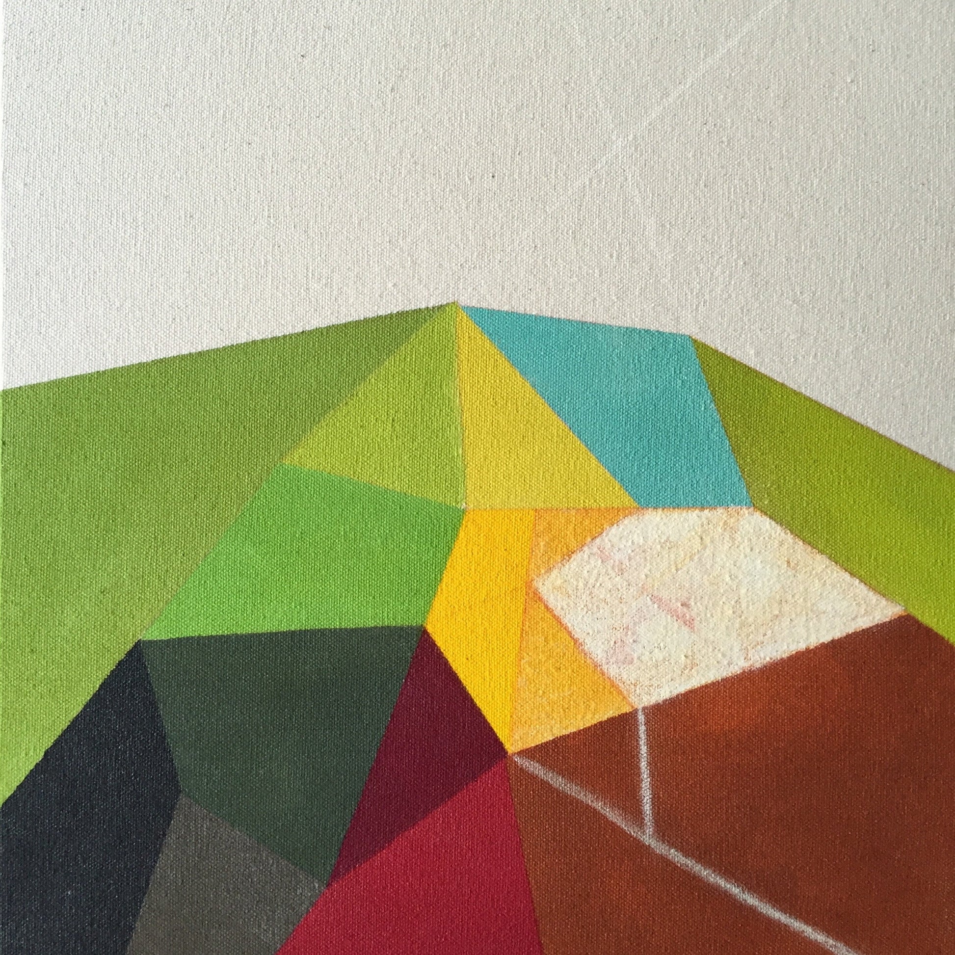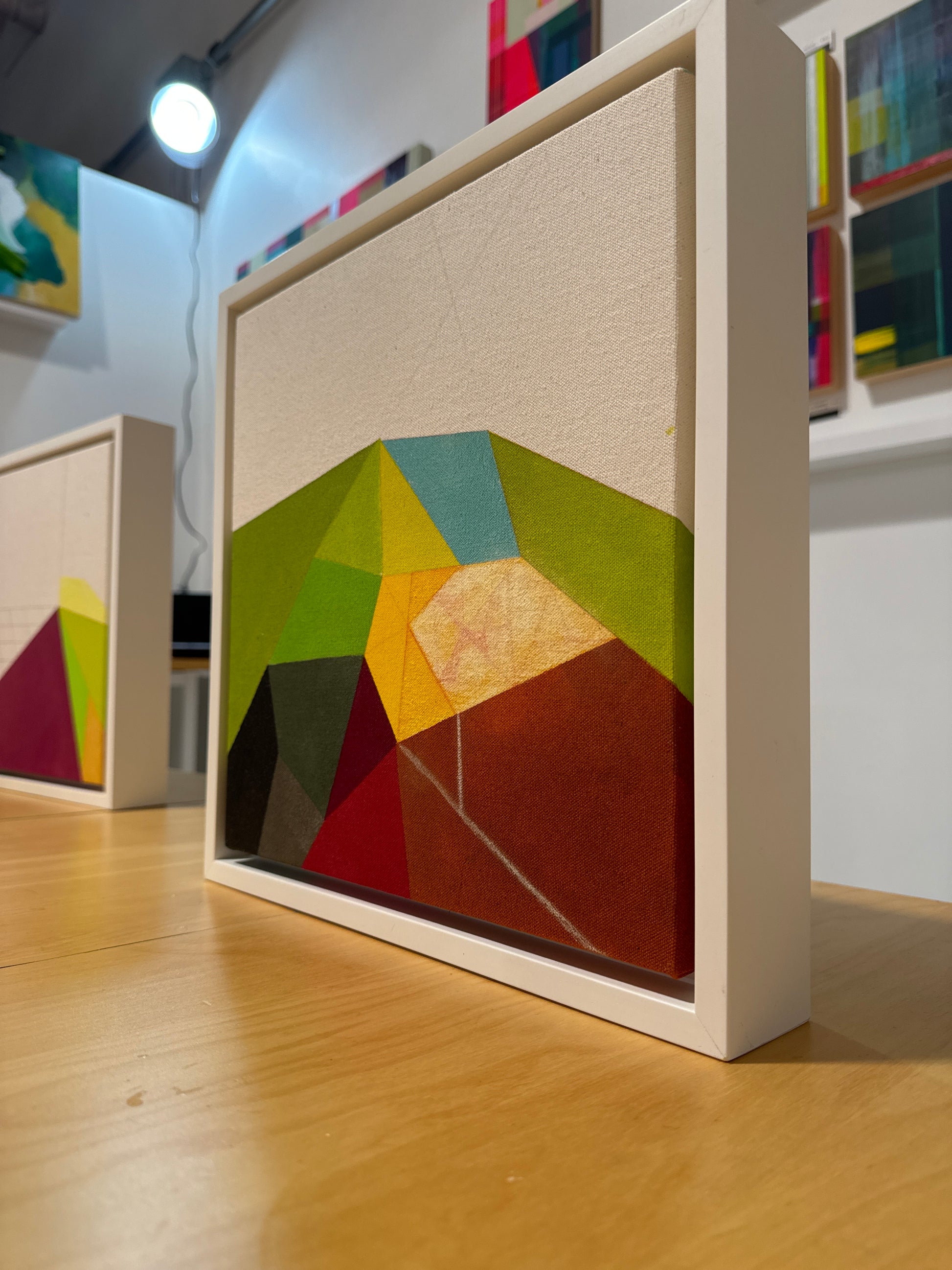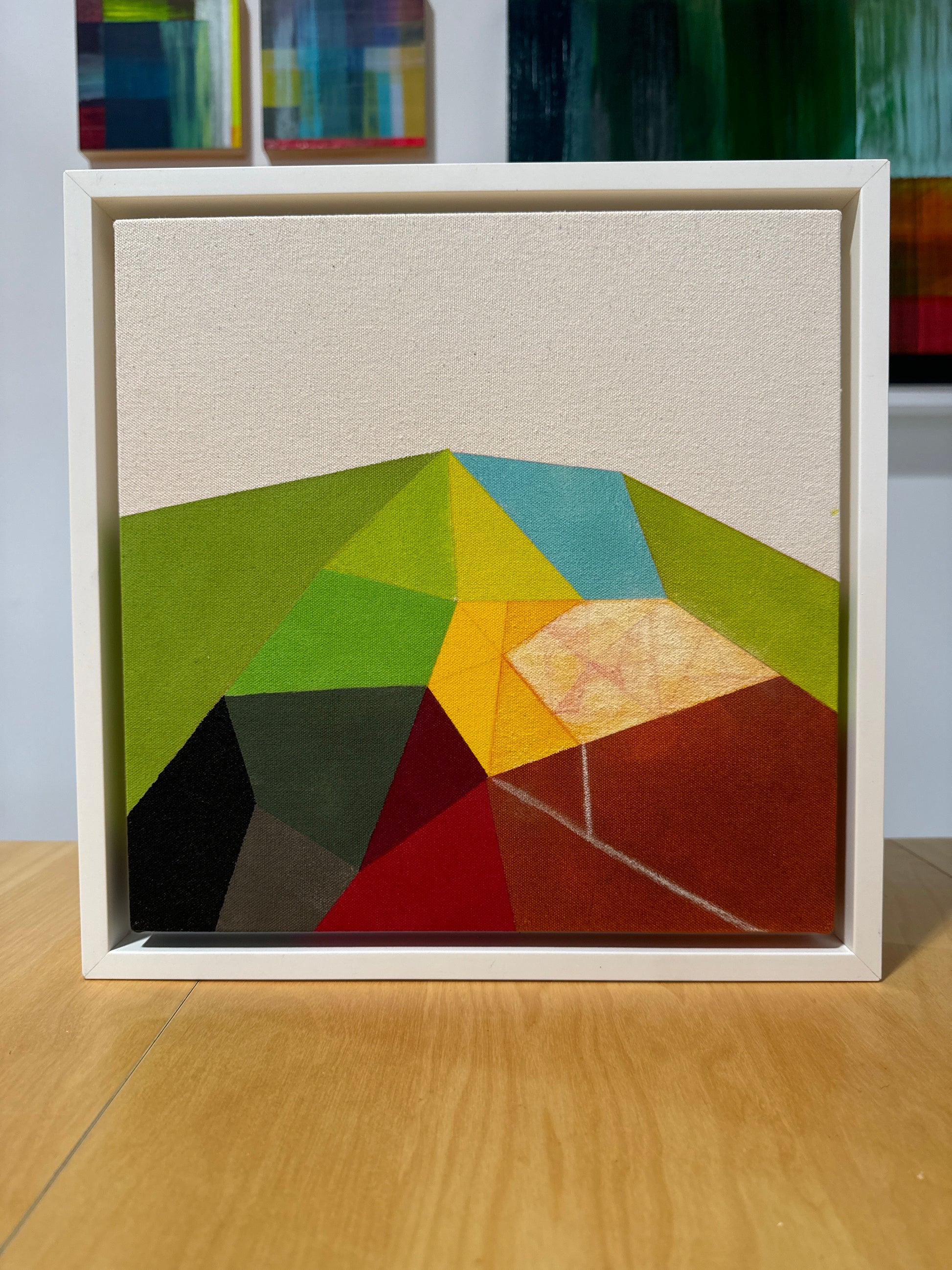 12 x 12” mixed media on canvas stretched over wood panel | framed in white wood frame