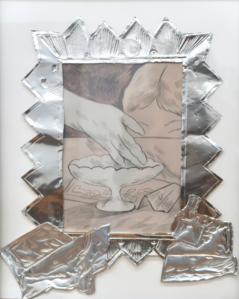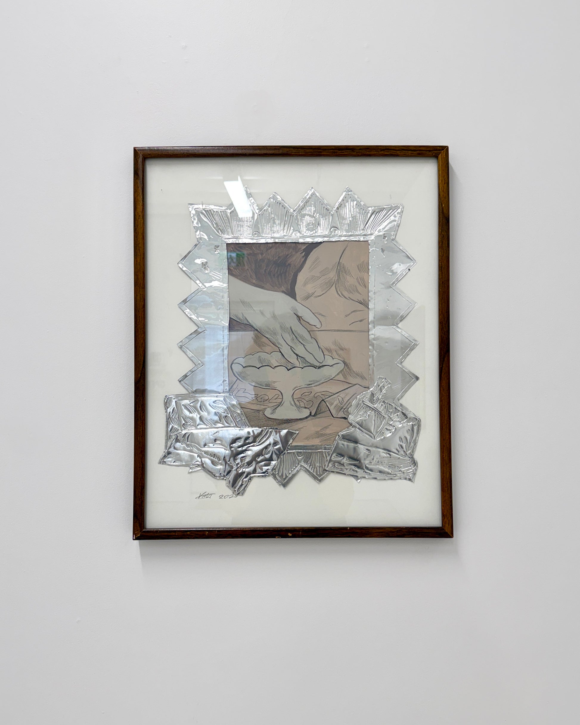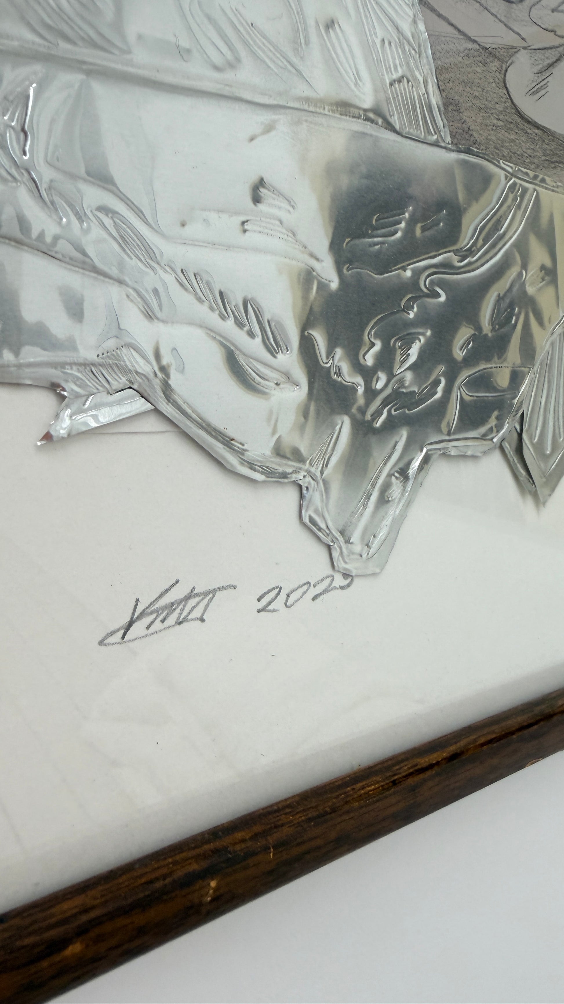 17 x 21” | paper, acrylic, charcoal, metal | 2025 | framed