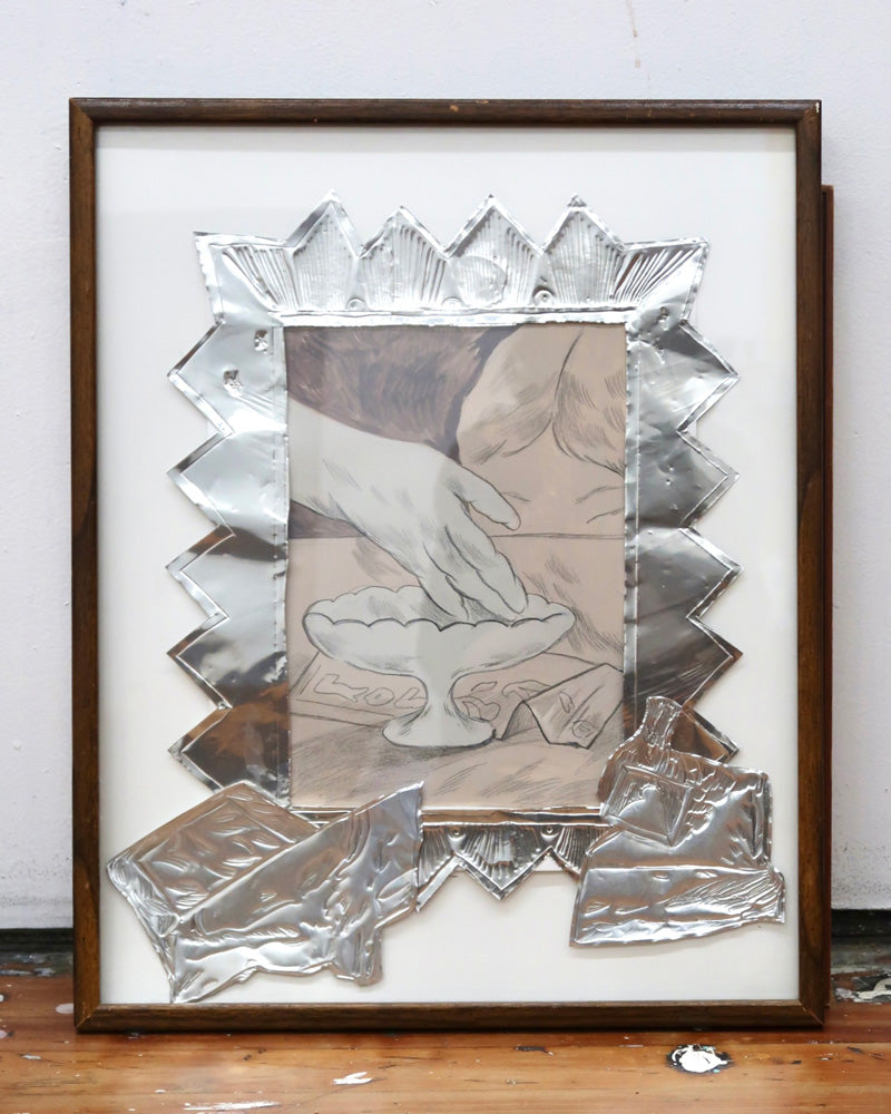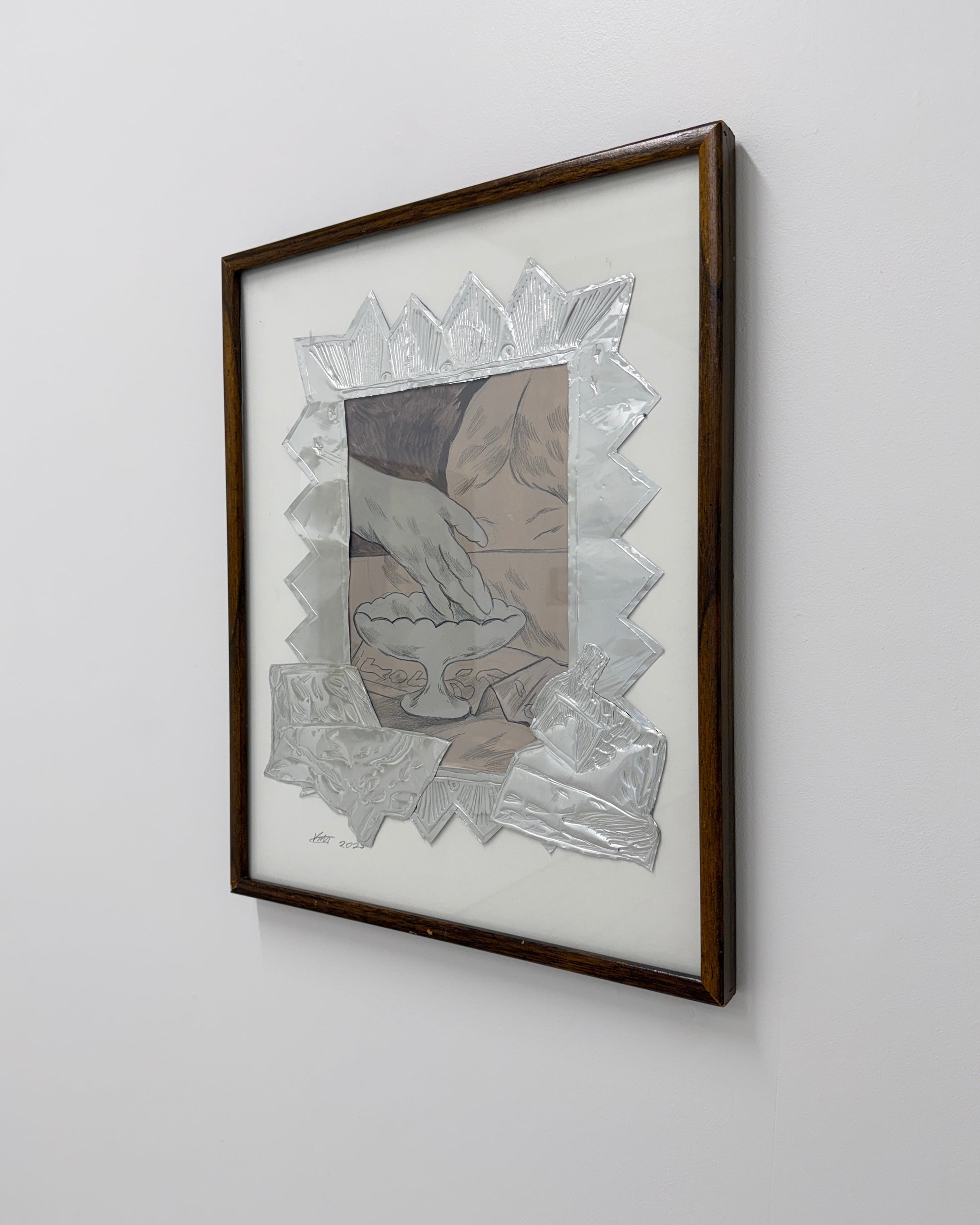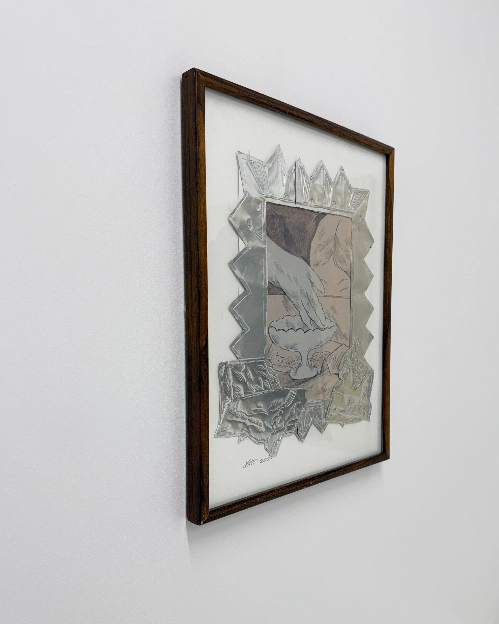 17 x 21” | paper, acrylic, charcoal, metal | 2025 | framed