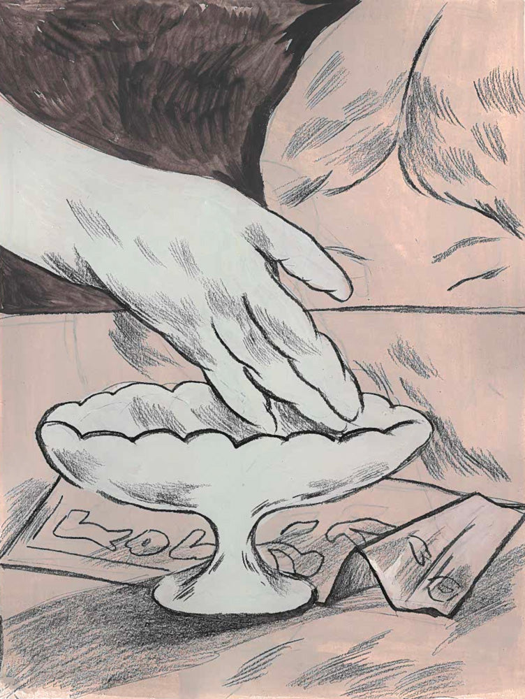 Kateryna Kostelna’s practice centres on domestic objects, particularly those found in the kitchen. Furniture, food, dishes, and daily tools become portals into rituals formed in times of scarcity or fear — habits created to maintain a sense of control. Her imagery is vivid and recurring: lavishly set tables, religious icons, ornate carpets. These are not only symbols of familial warmth; they also hold inherited anxiety. A persistent question echoes through her work: Could this ever happen again? When the fears of her childhood re-emerged as lived reality, she turned to painting, translating personal history into a visual memory-scape.