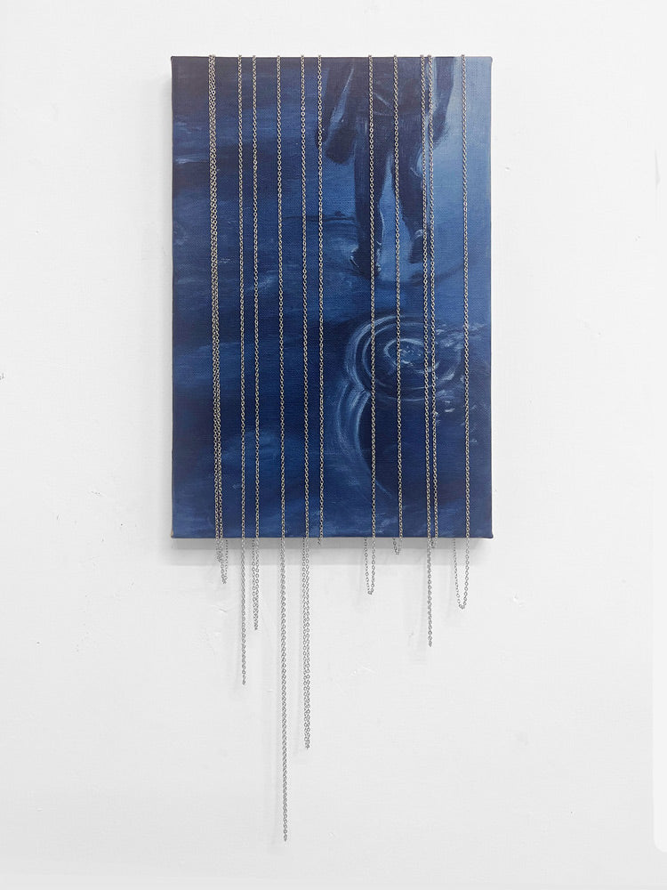 Ketty Zhang | acrylic on linen, metal chain - 8x19.5”