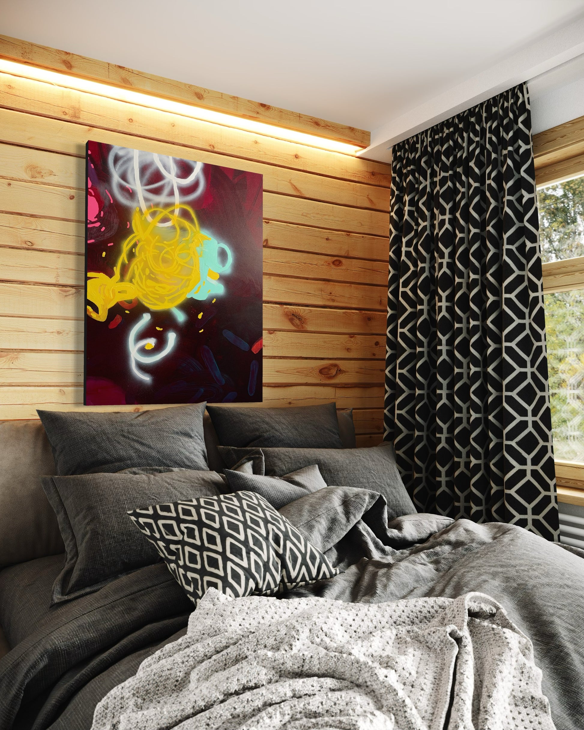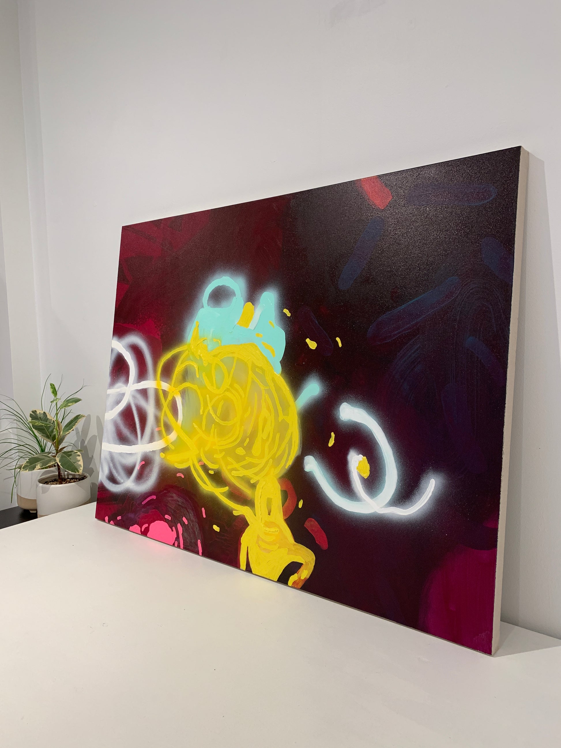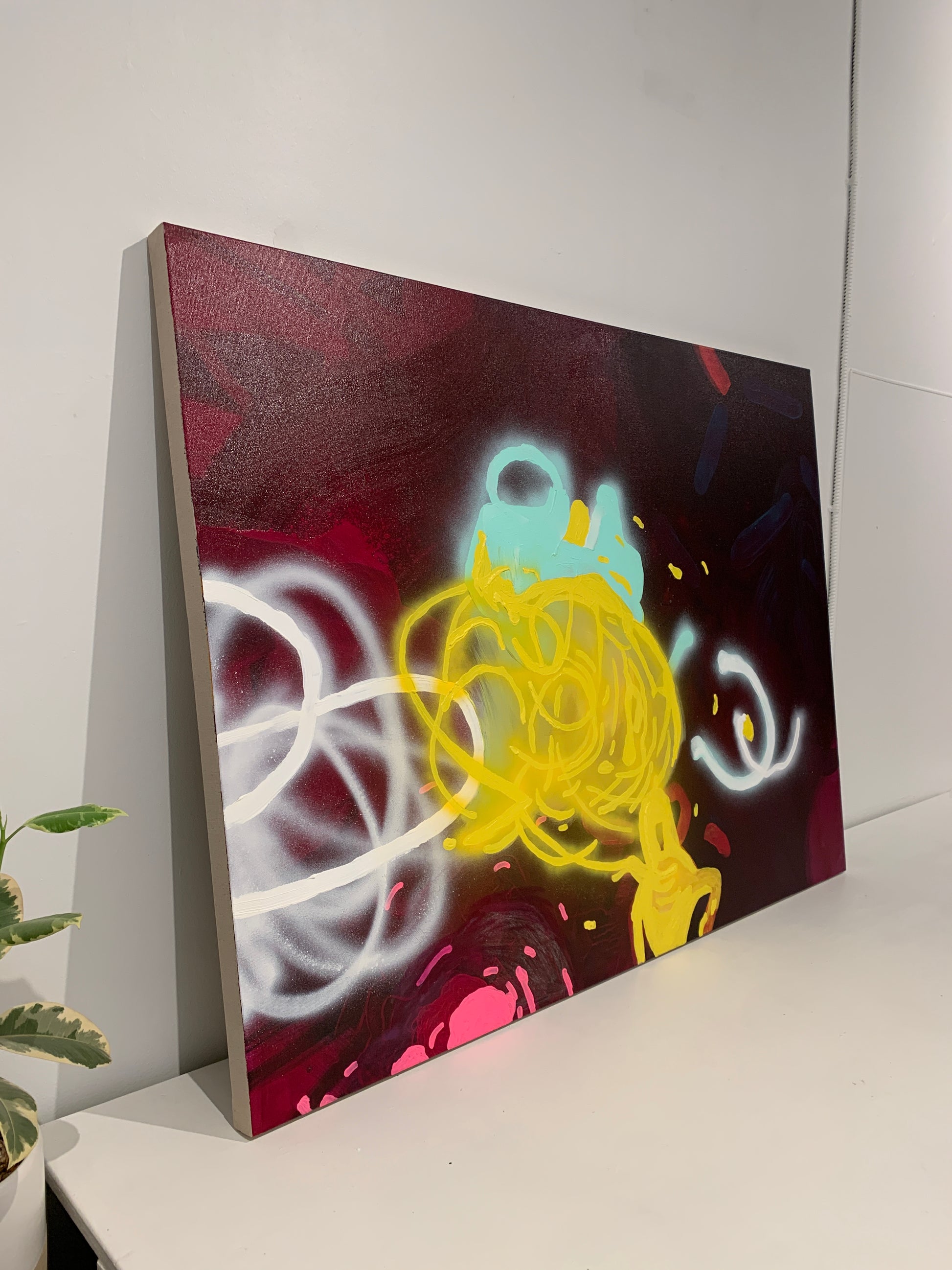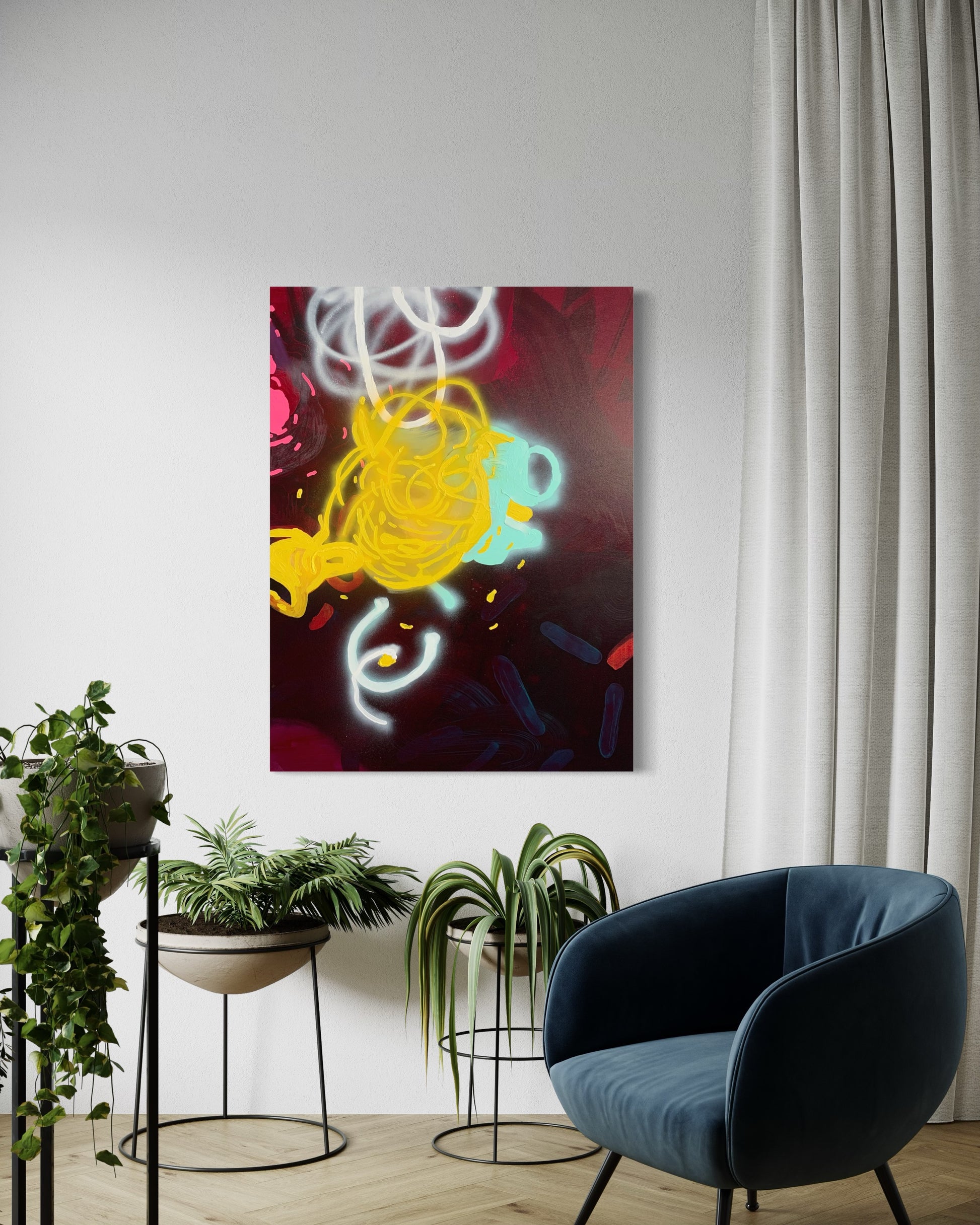 Like most of Pawliw's abstract work, this painting can be hung vertically or horizontally and facing any direction. All painting marks or light blemishes are part of the art. There are no returns on original art. Each painting is signed on the back with the date.