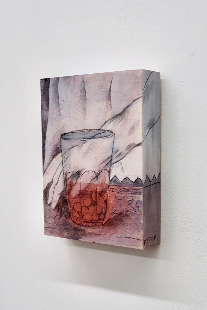 Kateryna Kostelna’s practice centres on domestic objects, particularly those found in the kitchen. Furniture, food, dishes, and daily tools become portals into rituals formed in times of scarcity or fear — habits created to maintain a sense of control. Her imagery is vivid and recurring: lavishly set tables, religious icons, ornate carpets. These are not only symbols of familial warmth; they also hold inherited anxiety. A persistent question echoes through her work: Could this ever happen again? When the fears of her childhood re-emerged as lived reality, she turned to painting, translating personal history into a visual memory-scape.