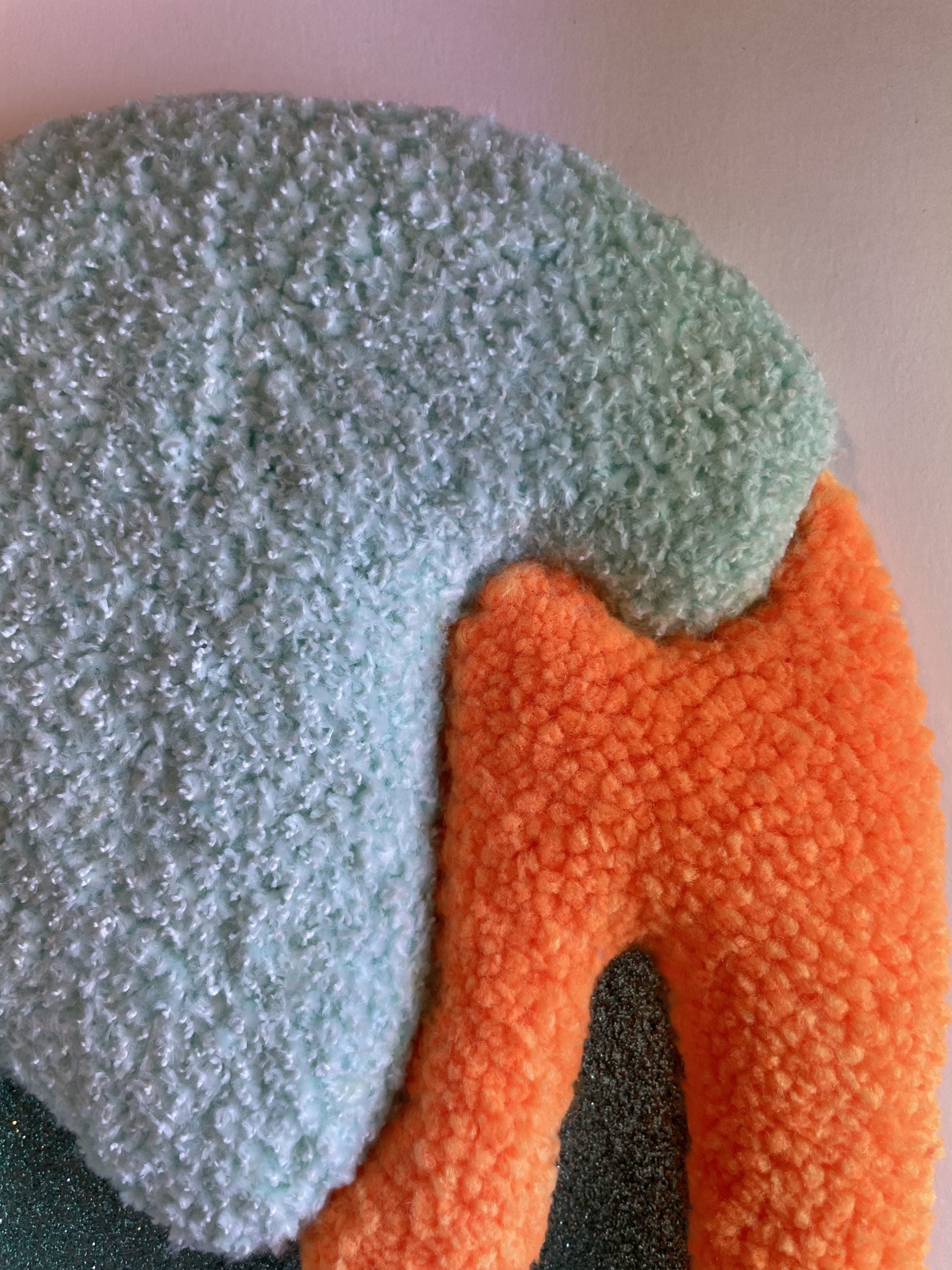 A soft and fuzzy weaving, dripping and dropping over a glittering balloon. Your eyes will enjoy the colours and sparkles, and your tactile senses will make you want to reach out and touch the soft, 3-dimensional weaving. Made lovingly by me in my little studio in Vancouver, BC, this weaving will brighten your home and heart .