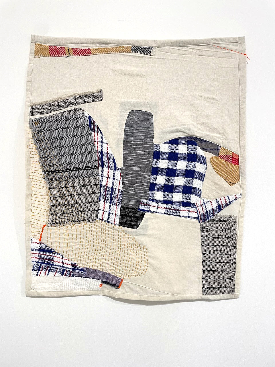 As a weaver dedicated to the creation of textiles, Hammond is deeply attuned to the relationship between labour and material. Each woven scrap and cutoff represents a moment in time—a tangible record of the weaving process. These remnants, often overlooked or discarded, hold particular value for her. With a focus on functional textiles that must be visually balanced from all sides, Hammond began reworking her unaltered handwoven offcuts into fabric collages. These compositions emerged slowly and intuitively, shaped by the availability of the right pieces over time.