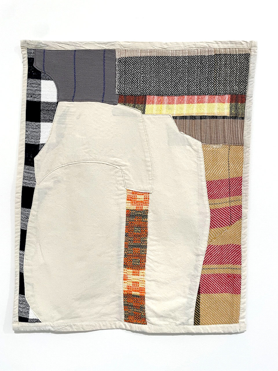 As a weaver dedicated to the creation of textiles, Hammond is deeply attuned to the relationship between labour and material. Each woven scrap and cutoff represents a moment in time—a tangible record of the weaving process. These remnants, often overlooked or discarded, hold particular value for her. With a focus on functional textiles that must be visually balanced from all sides, Hammond began reworking her unaltered handwoven offcuts into fabric collages. These compositions emerged slowly and intuitively, shaped by the availability of the right pieces over time.