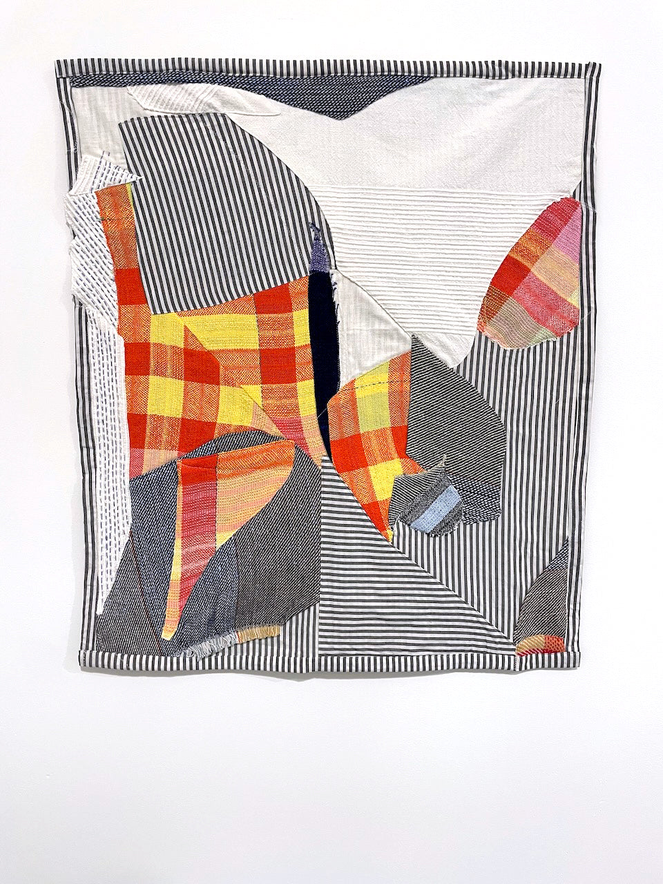 As a weaver dedicated to the creation of textiles, Hammond is deeply attuned to the relationship between labour and material. Each woven scrap and cutoff represents a moment in time—a tangible record of the weaving process. These remnants, often overlooked or discarded, hold particular value for her. With a focus on functional textiles that must be visually balanced from all sides, Hammond began reworking her unaltered handwoven offcuts into fabric collages. These compositions emerged slowly and intuitively, shaped by the availability of the right pieces over time.