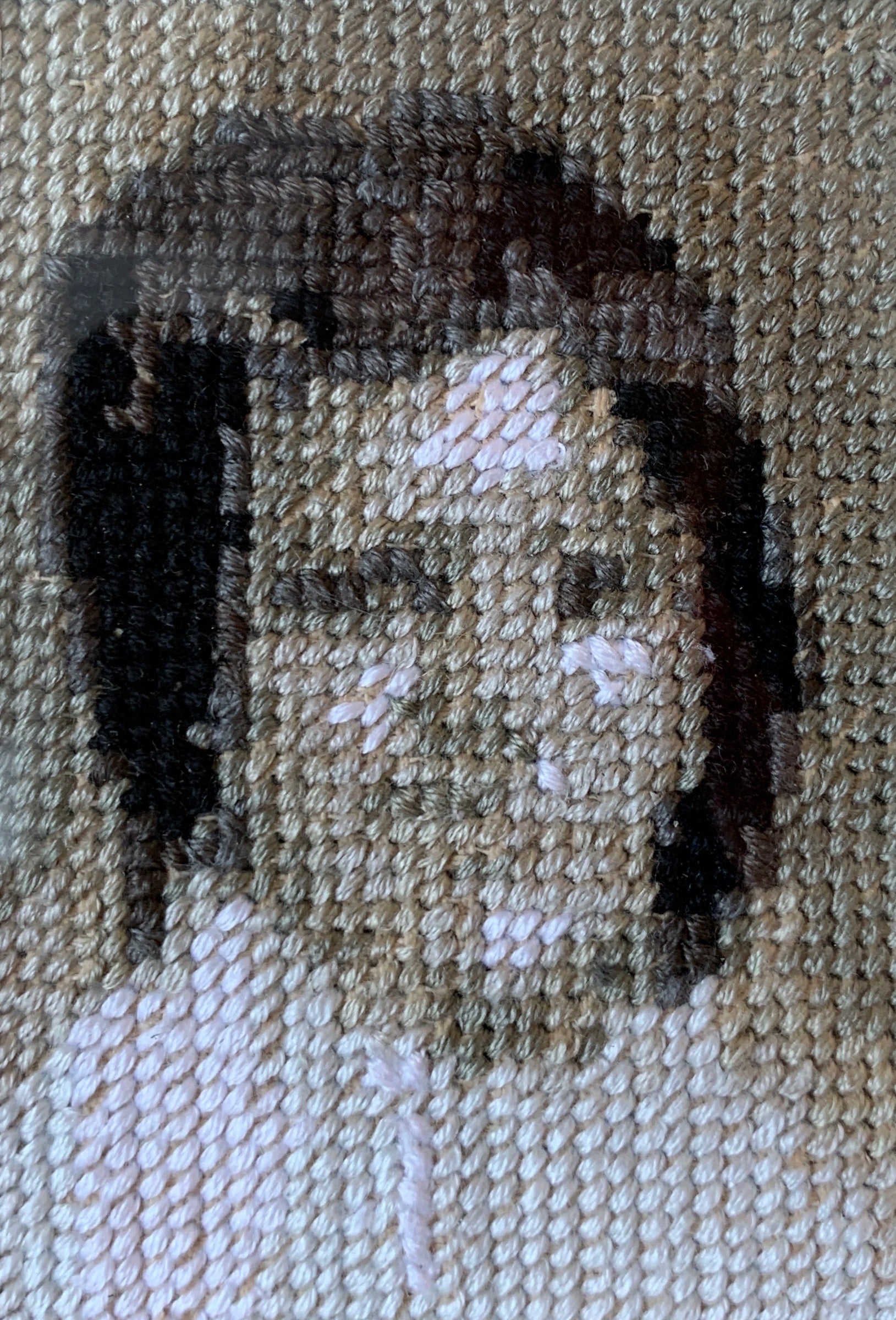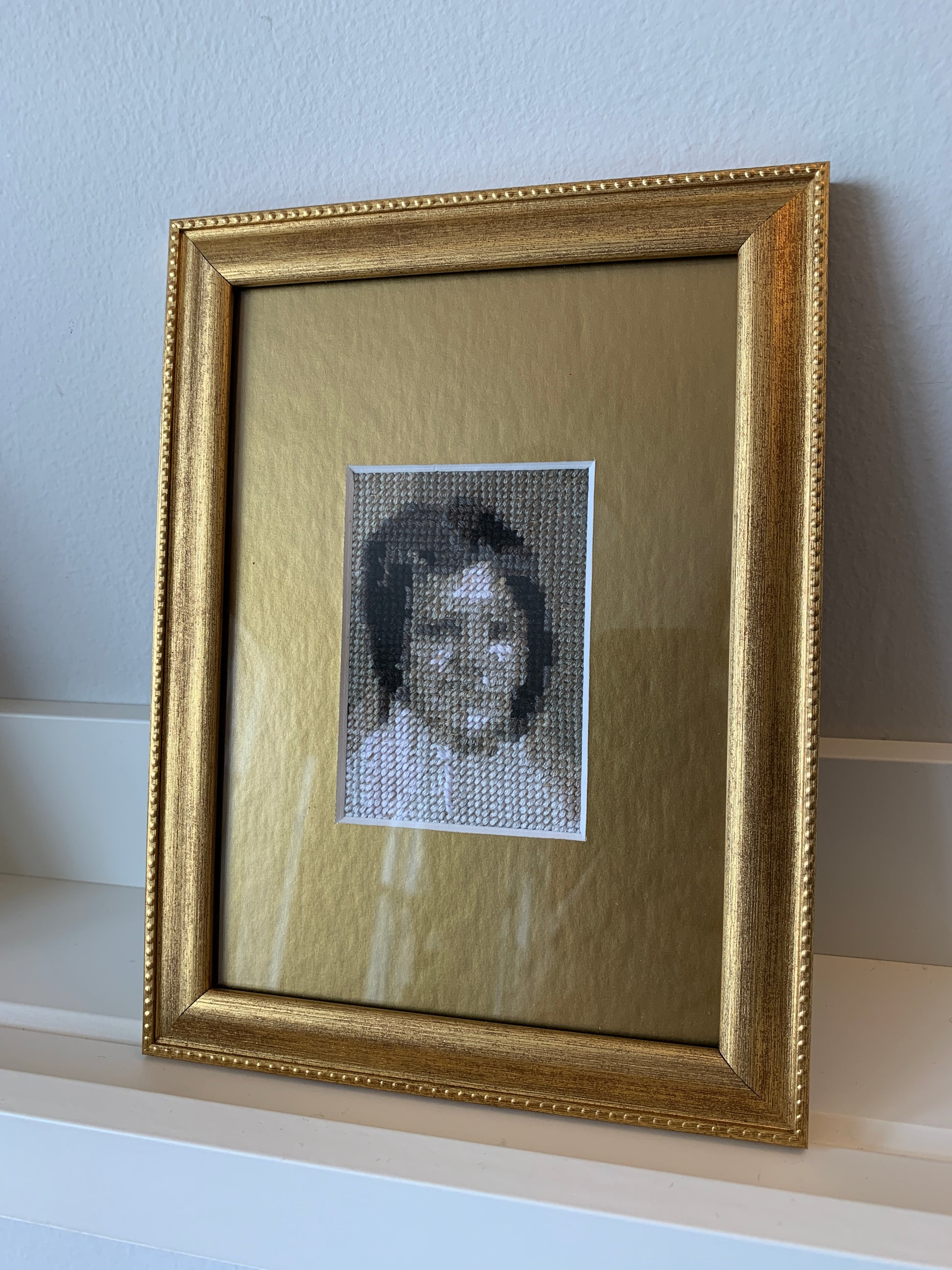 Cross-stitch portraits of kindergarteners who attended school with the artist, but have since been forgotten (Victoria School, Saskatoon, 1975).