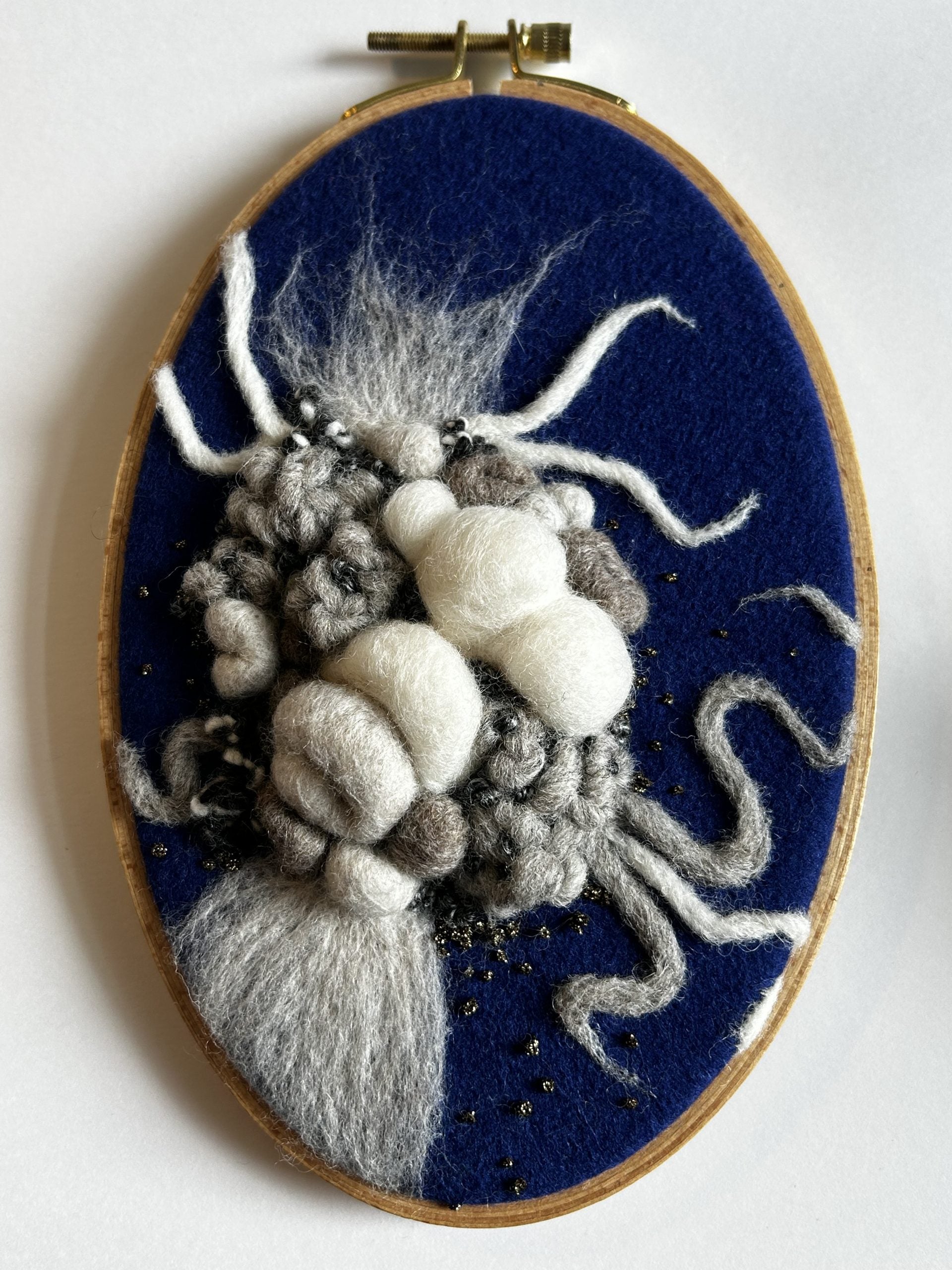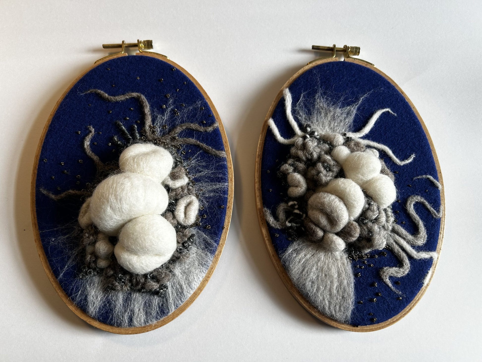"I have always been fascinated by form and texture, and this drew me to fibre as a medium. I learned to sew as a child and pursued fashion design in my 20s. When designing clothing I often added surface design to the pieces I made. Later as I decided to move from clothing design into a more hands on practice, I experimented with weaving, felting and embroidery.