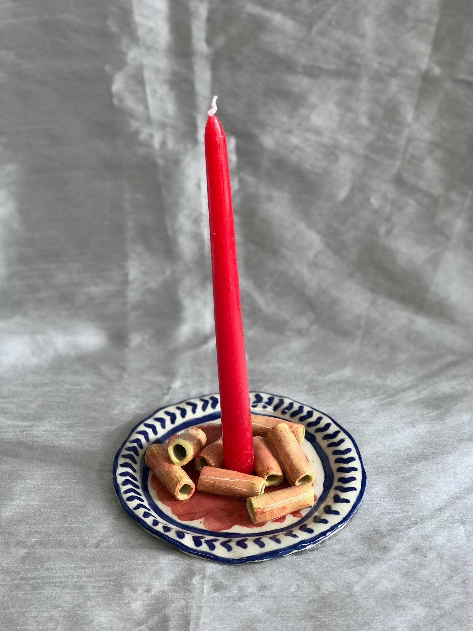 7” x 2” | ceramic | one-of-a-kind | holds taper candle!