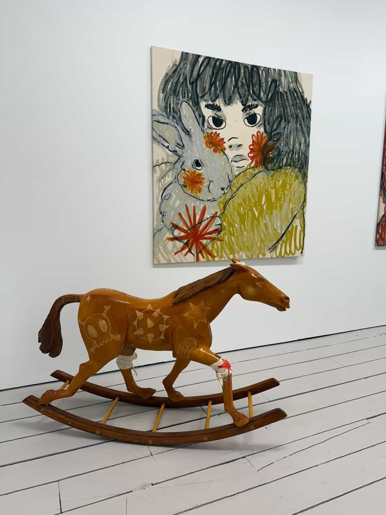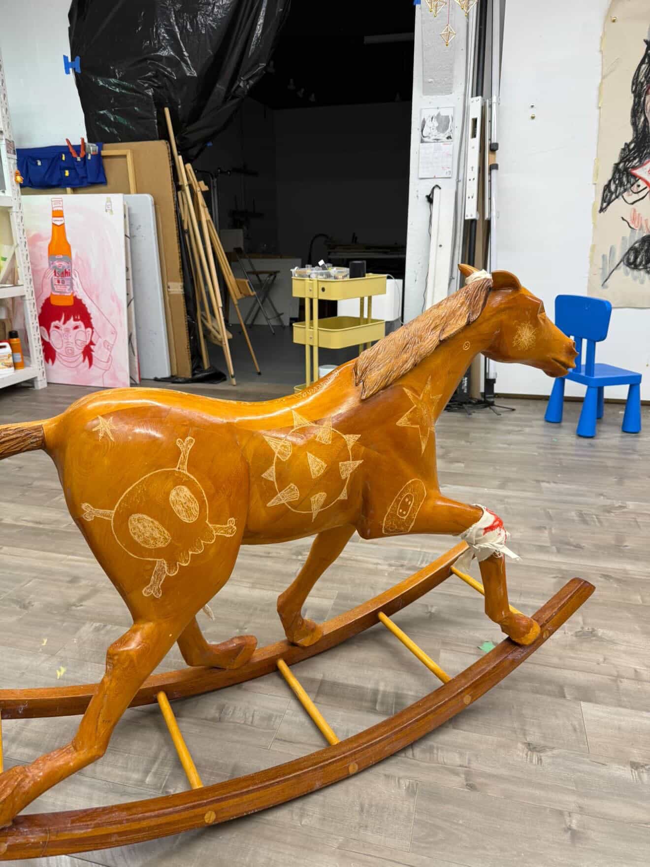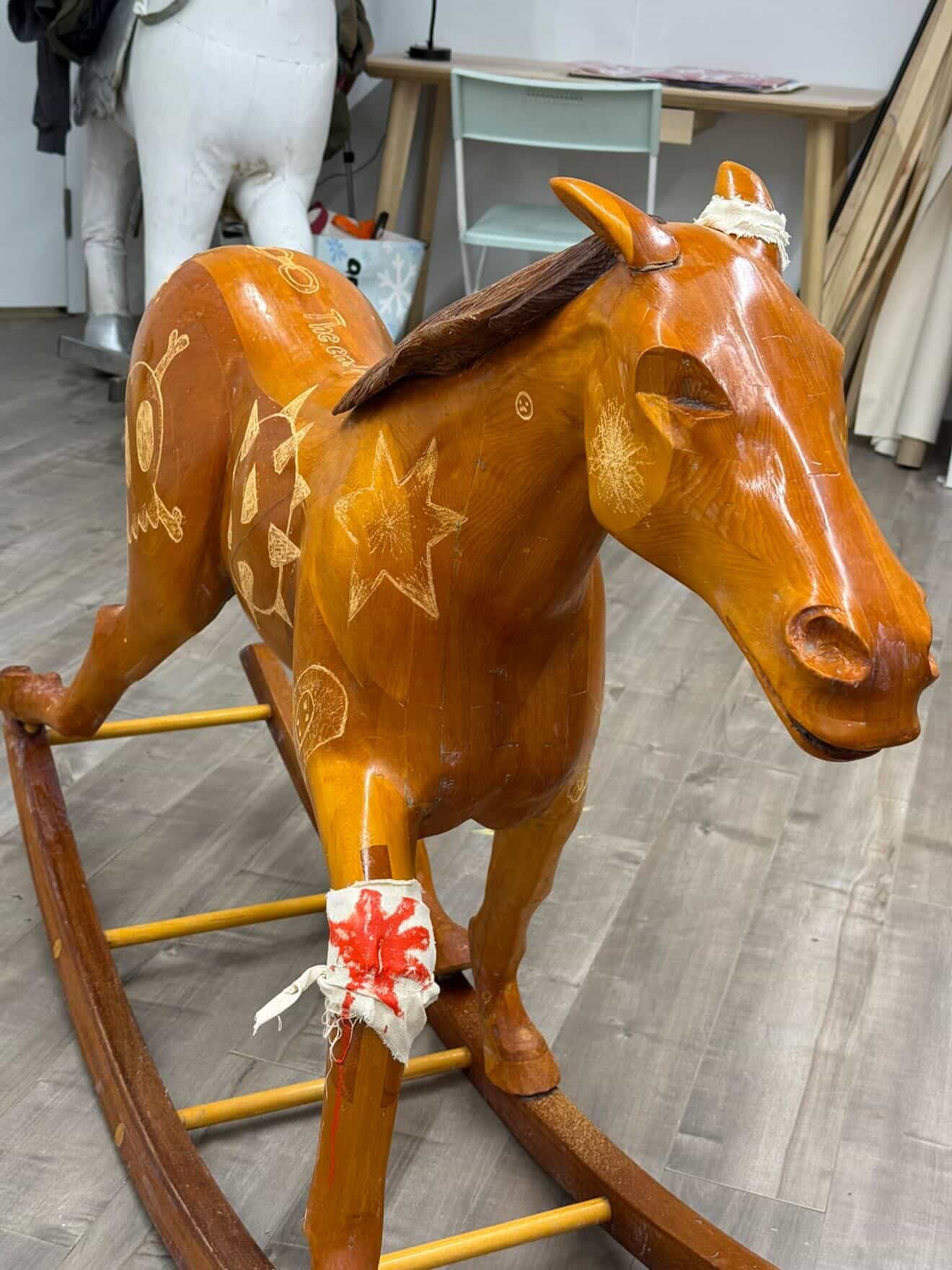 solid wood rocking horse hand carved and engraved | approx. 3 ft high
